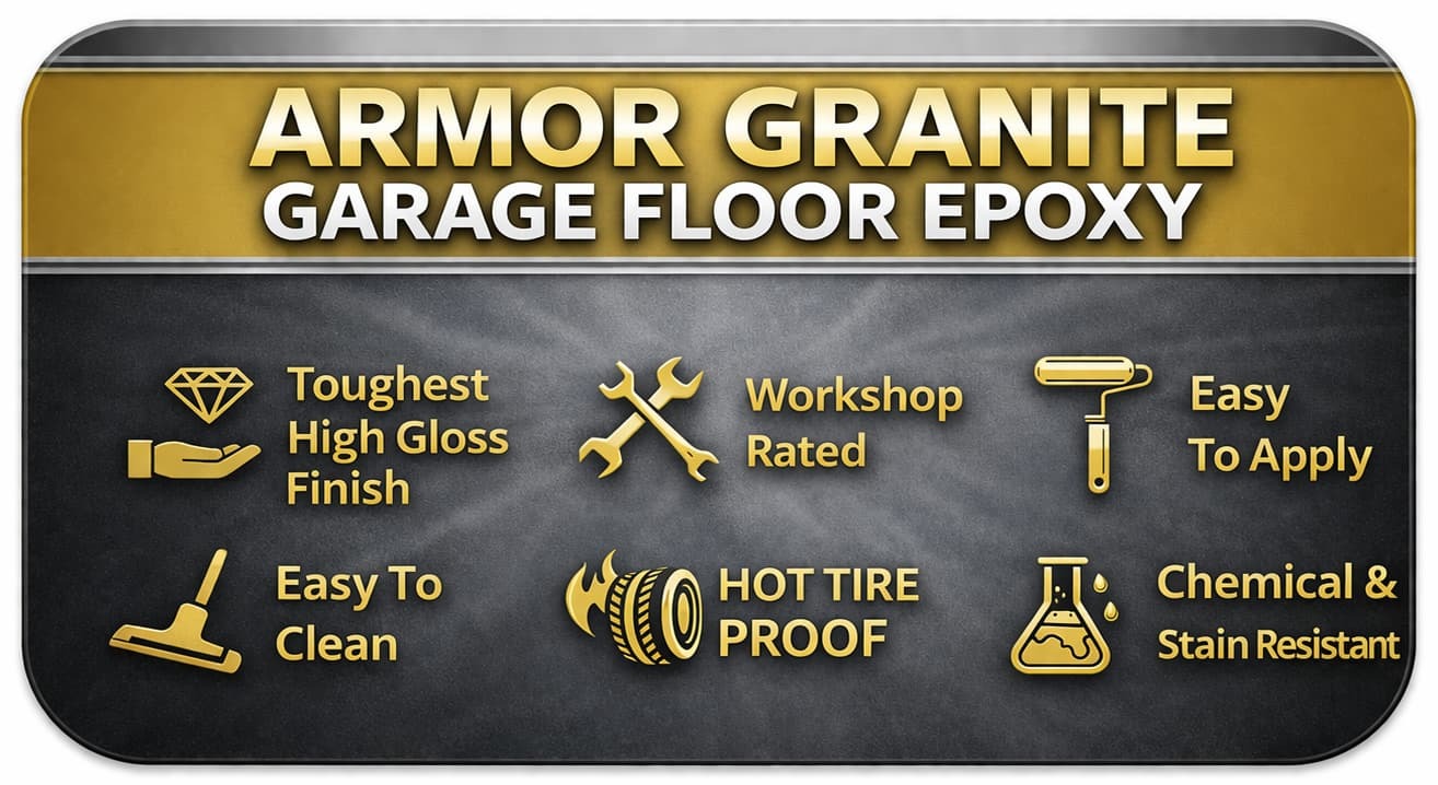 Definition: ArmorGarage Armor Granite is a 5-layer epoxy coating system engineered to bond to properly prepared concrete and resist hot-tire pickup, stains, chemicals, impacts and tire abrasion wear.