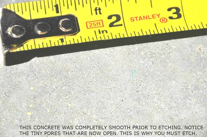 Next, proper prep is critical. We show you how to prep your floor properly and what it should look like prior to applying an epoxy coating. This is what your floor should look like when it's ready for coating. Those tiny pores are open from acid etching and or grinding. Once our epoxy or primer gets into those pores, it's impossible to separate the epoxy from the concrete.